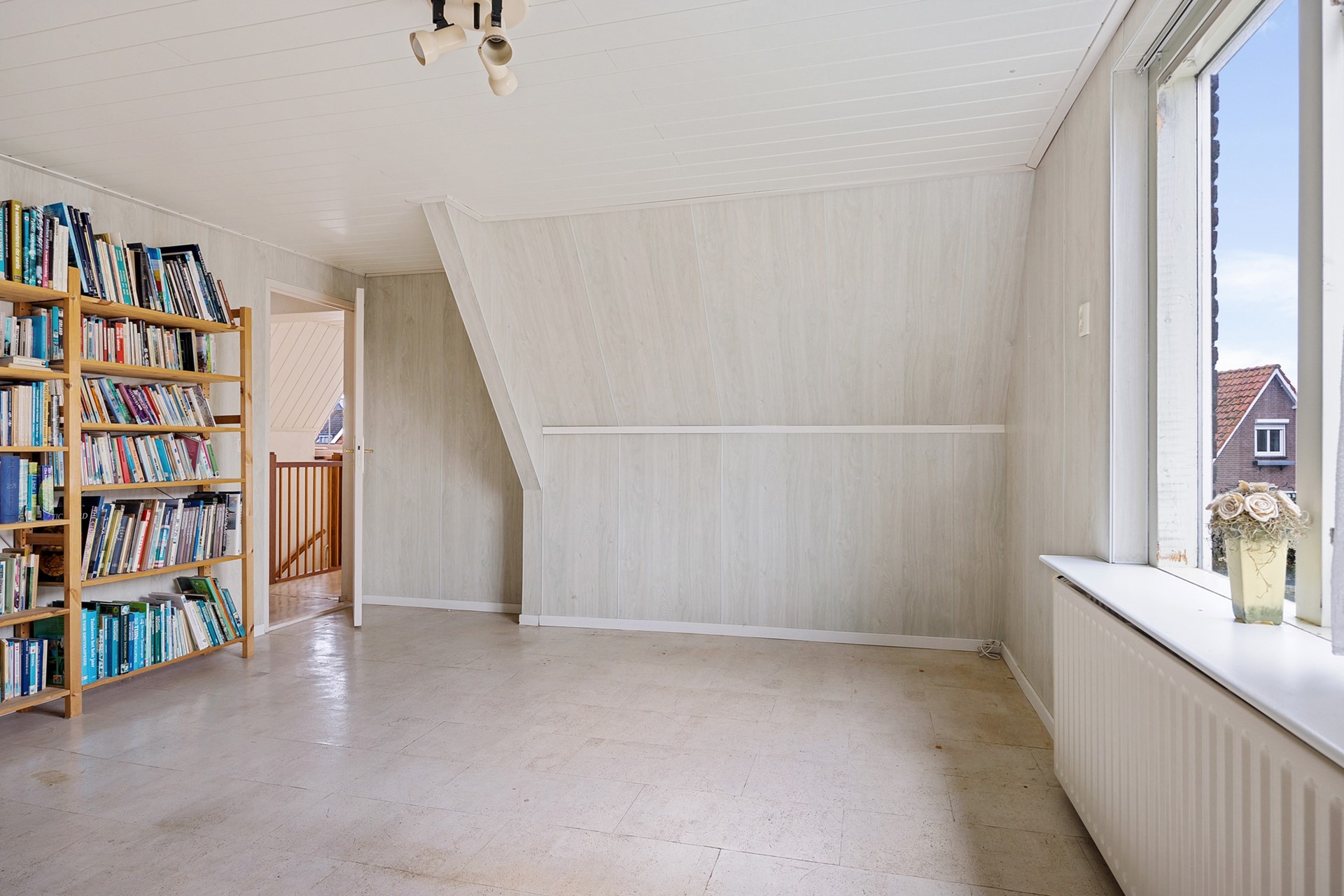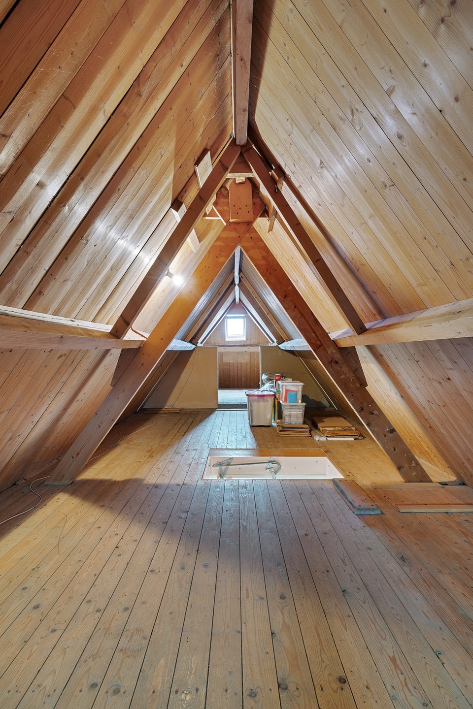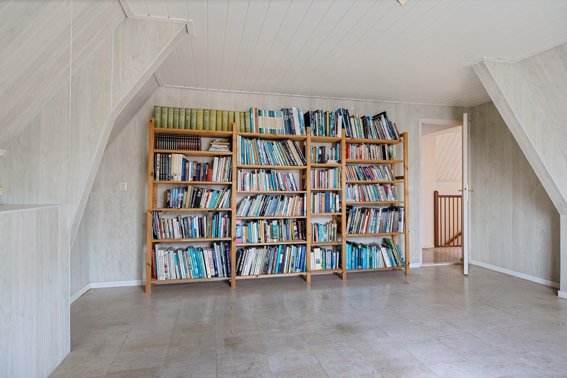 Vanaf de overloop met praktische bergruimte, bereik je de vier slaapkamers en de tweede badkamer. Aan de voorzijde bevinden zich twee kleinere slaapkamers, waarvan één met een extra dakraam en inbouwkast. Aan de achterzijde zijn twee grotere slaapkamers te vinden. De badkamer op de verdieping, voorzien van dakraam, is eenvoudig maar netjes en praktisch qua indeling met een wastafel, tweede toilet en inloopdouche. Ook deze etage biedt potentie voor een vernieuwde indeling en tal van mogelijkheden. Een vlizotrap op de overloop biedt toegang tot de grote zolder met veel opbergruimte en eventueel de mogelijkheid voor een extra kamer, na plaatsing van dakkapellen.
