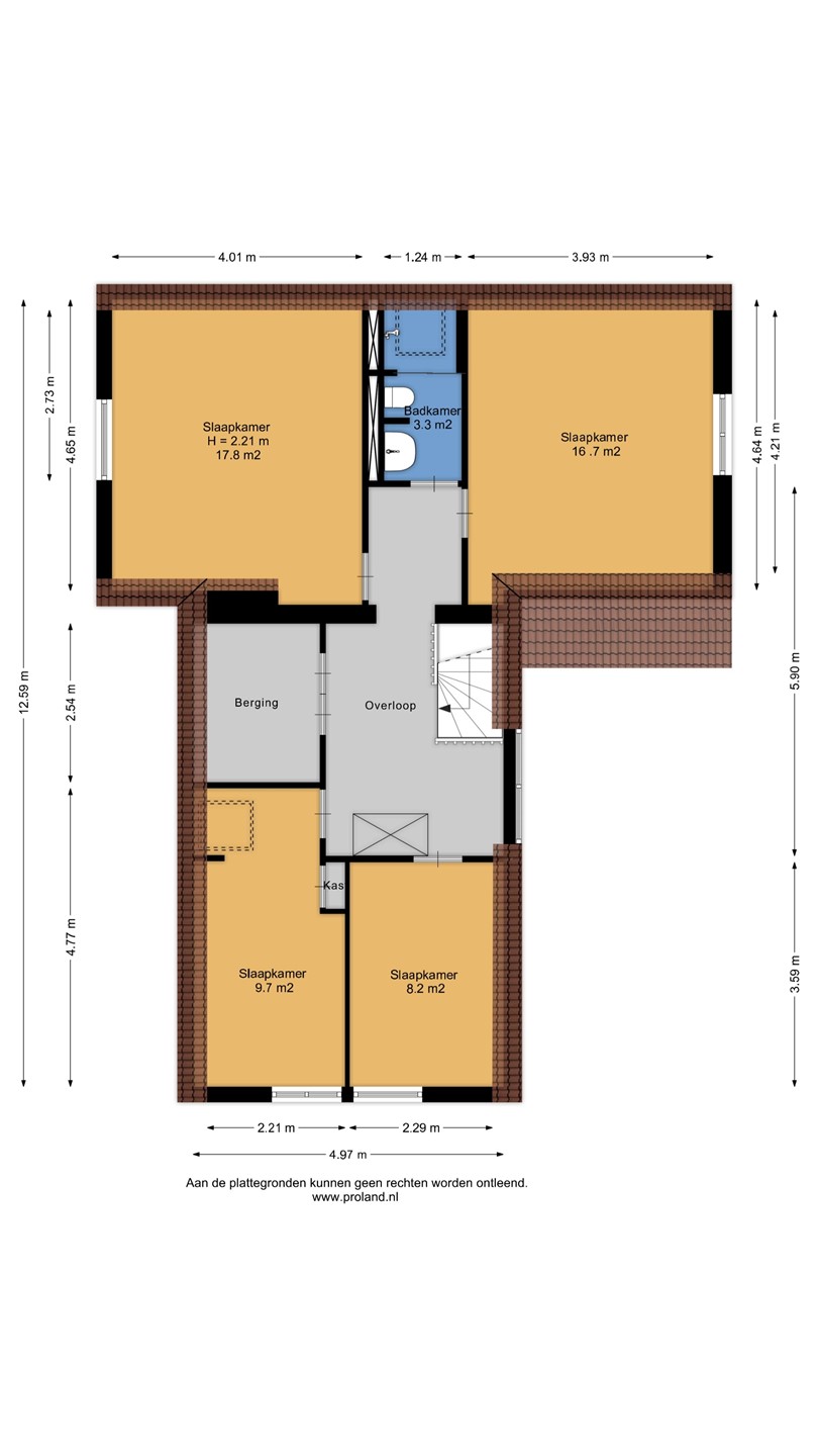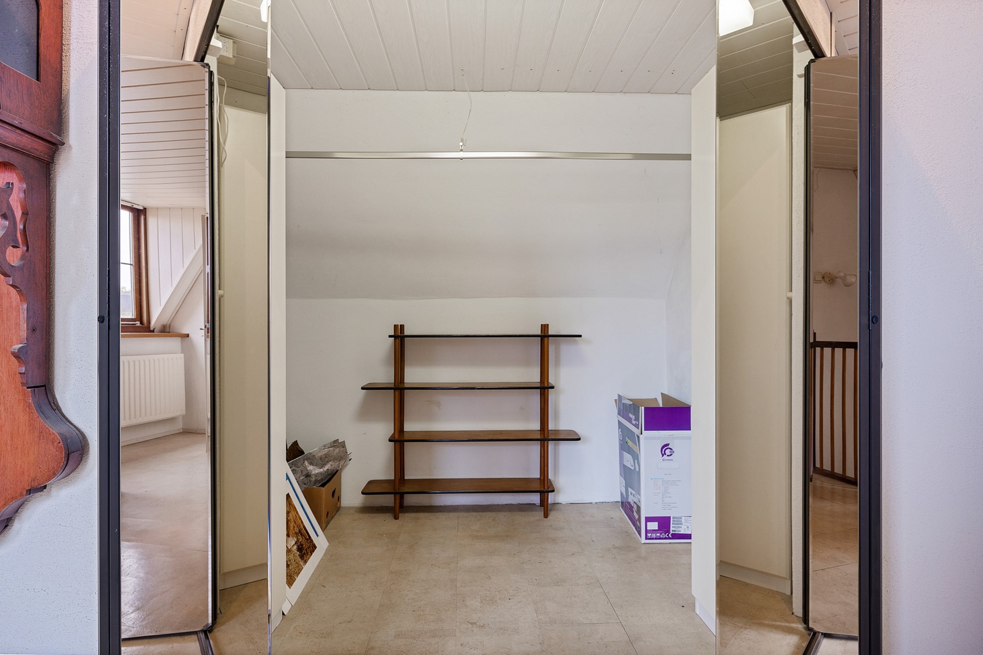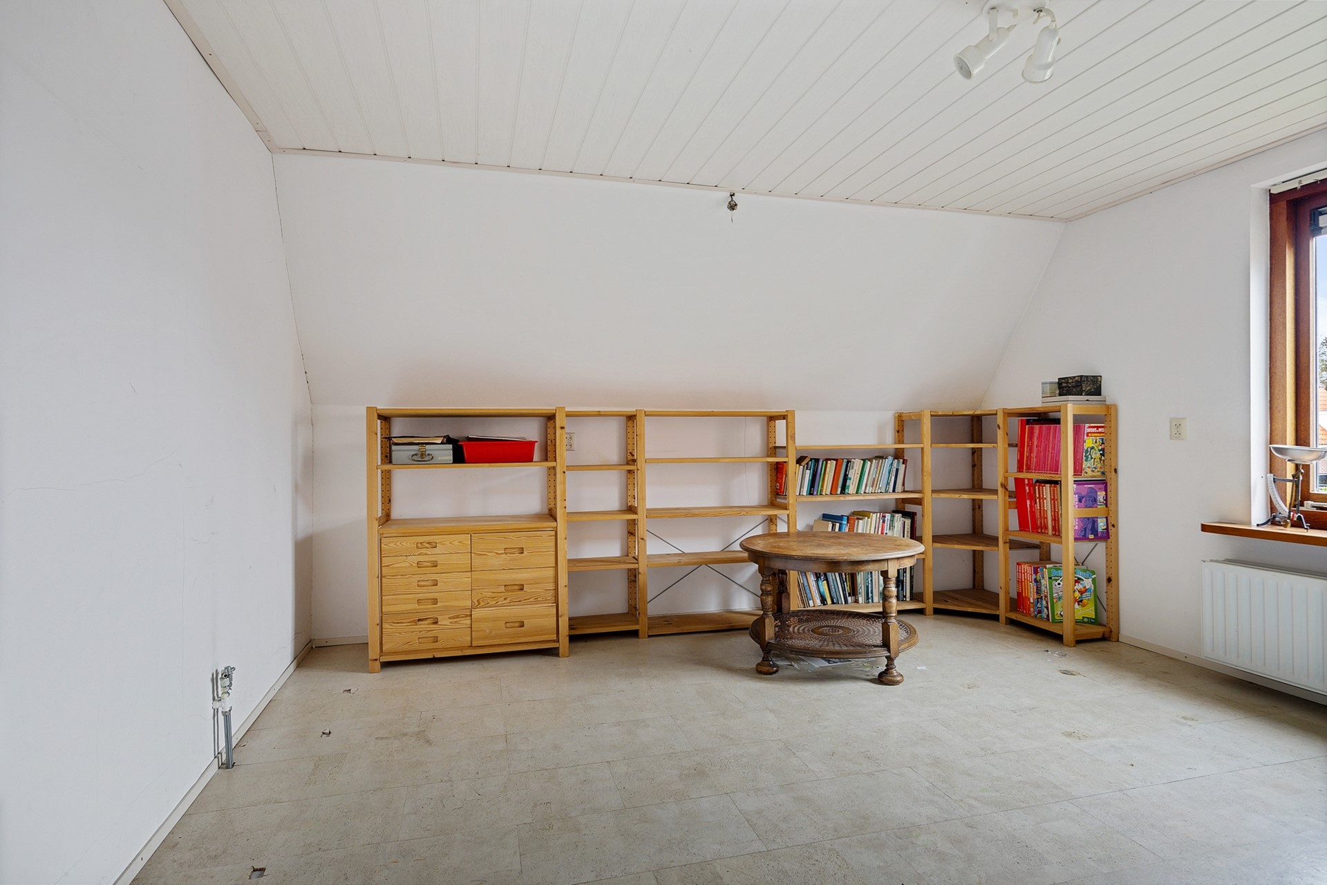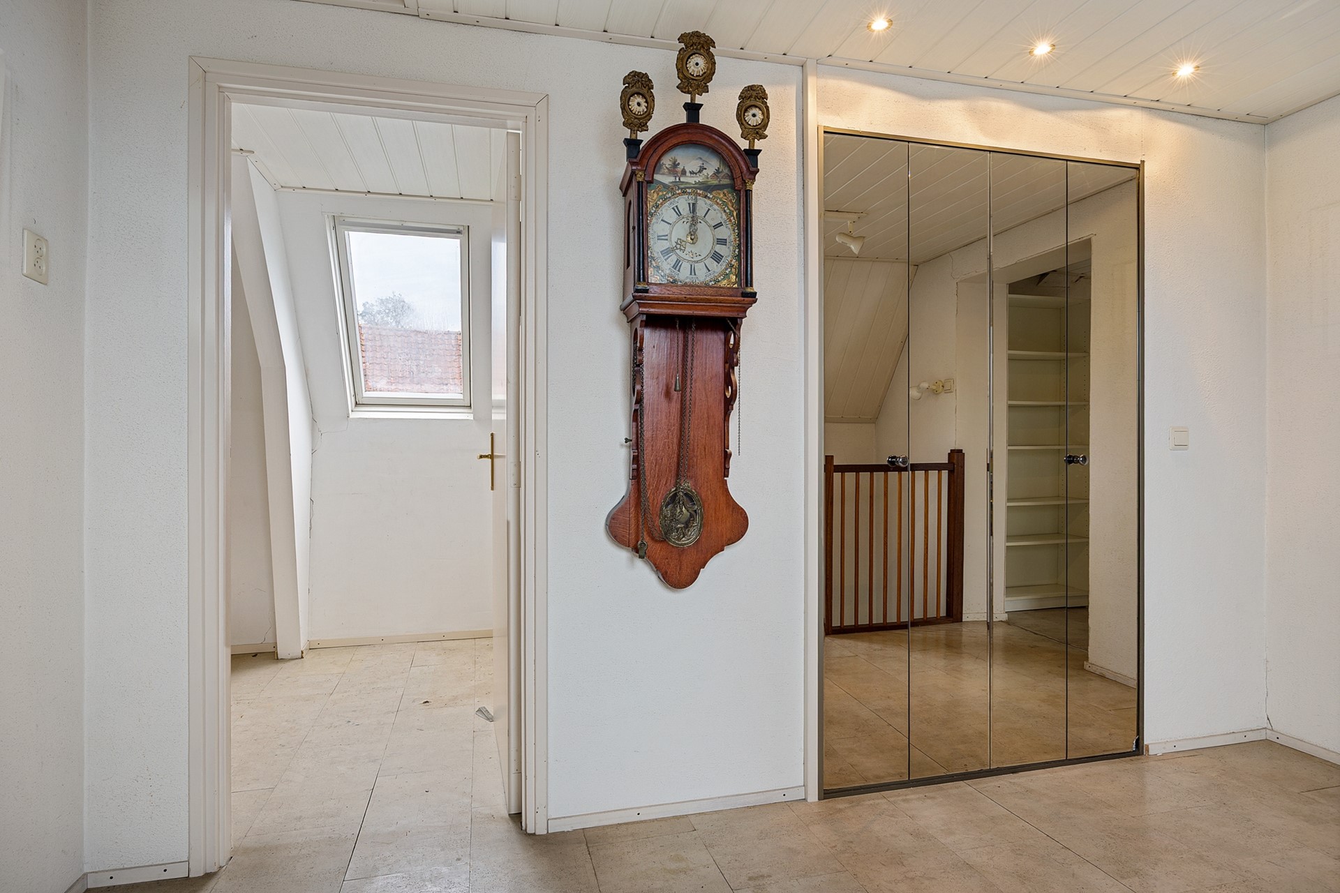 Vanaf de overloop met praktische bergruimte, bereik je de vier slaapkamers en de tweede badkamer. Aan de voorzijde bevinden zich twee kleinere slaapkamers, waarvan één met een extra dakraam en inbouwkast. Aan de achterzijde zijn twee grotere slaapkamers te vinden. De badkamer op de verdieping, voorzien van dakraam, is eenvoudig maar netjes en praktisch qua indeling met een wastafel, tweede toilet en inloopdouche. Ook deze etage biedt potentie voor een vernieuwde indeling en tal van mogelijkheden. Een vlizotrap op de overloop biedt toegang tot de grote zolder met veel opbergruimte en eventueel de mogelijkheid voor een extra kamer, na plaatsing van dakkapellen.
