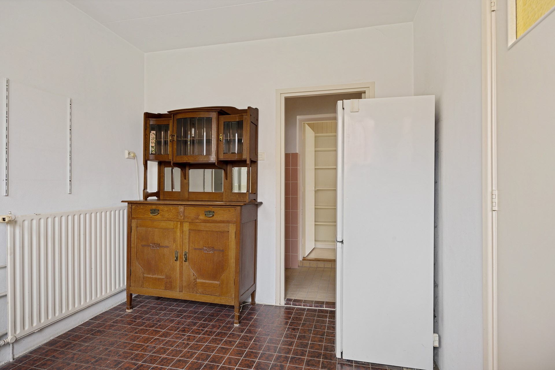 Aan de tuingerichte achterzijde is een praktisch bemeten, verouderde keukenruimte te vinden, die aansluit op de naastgelegen bijkeuken met aansluiting voor de wasmachine. Beide ruimtes hebben de potentie om, na verbouwing, samen een heerlijke grote woonkeuken te worden. Vanuit de bijkeuken bereik je de verwarmde, inpandige garage met toegang tot de kelder. Hier is de recente Cv-ketel (Nefit, 2022) te vinden. Vanuit de garage bereik je de achtergelegen tuin.