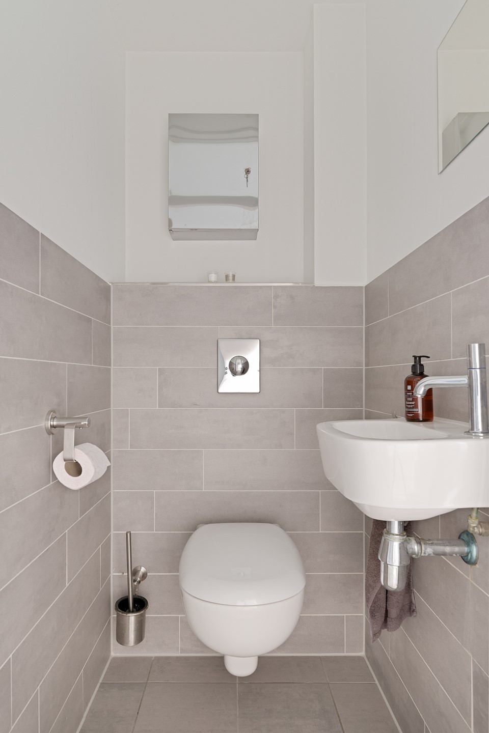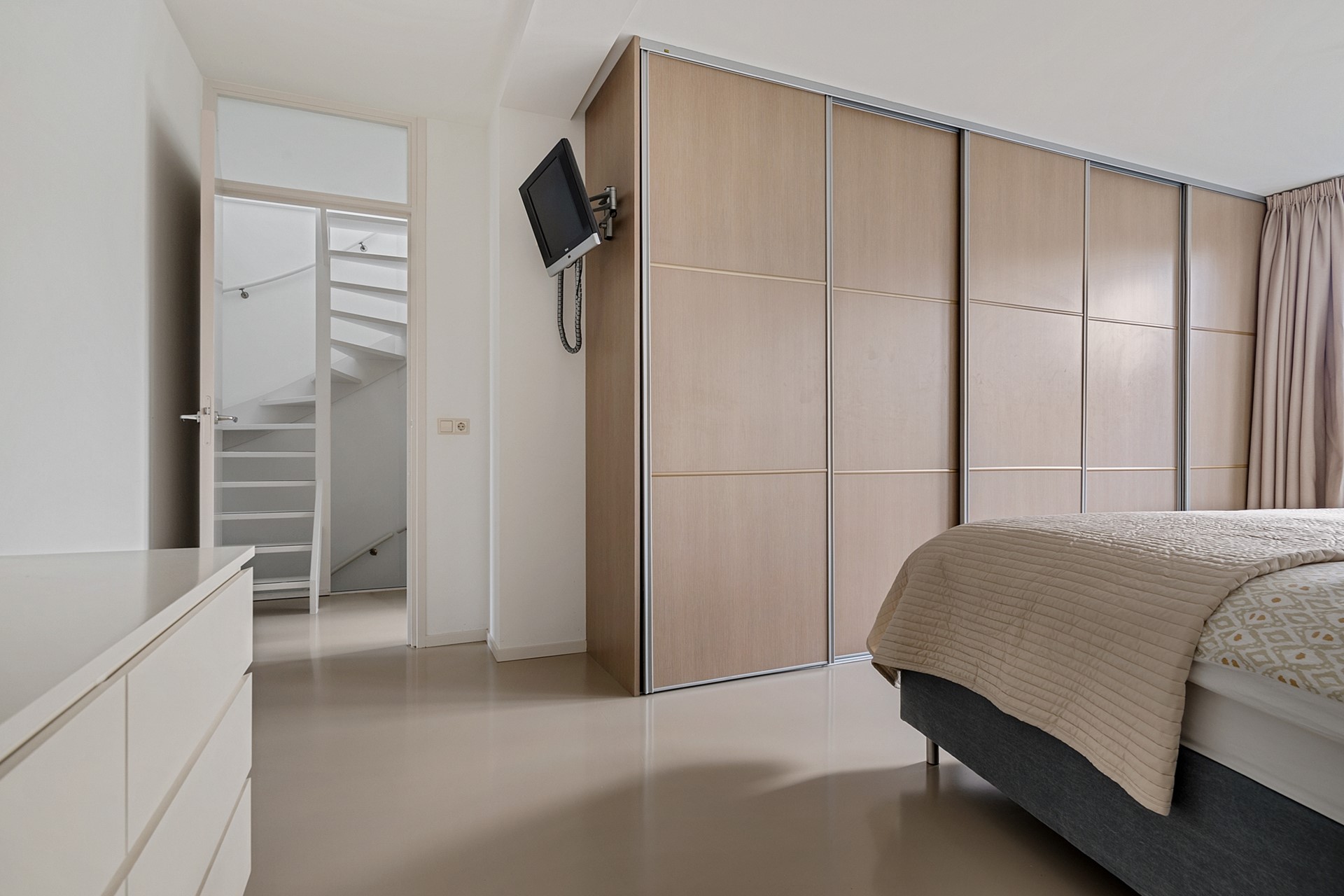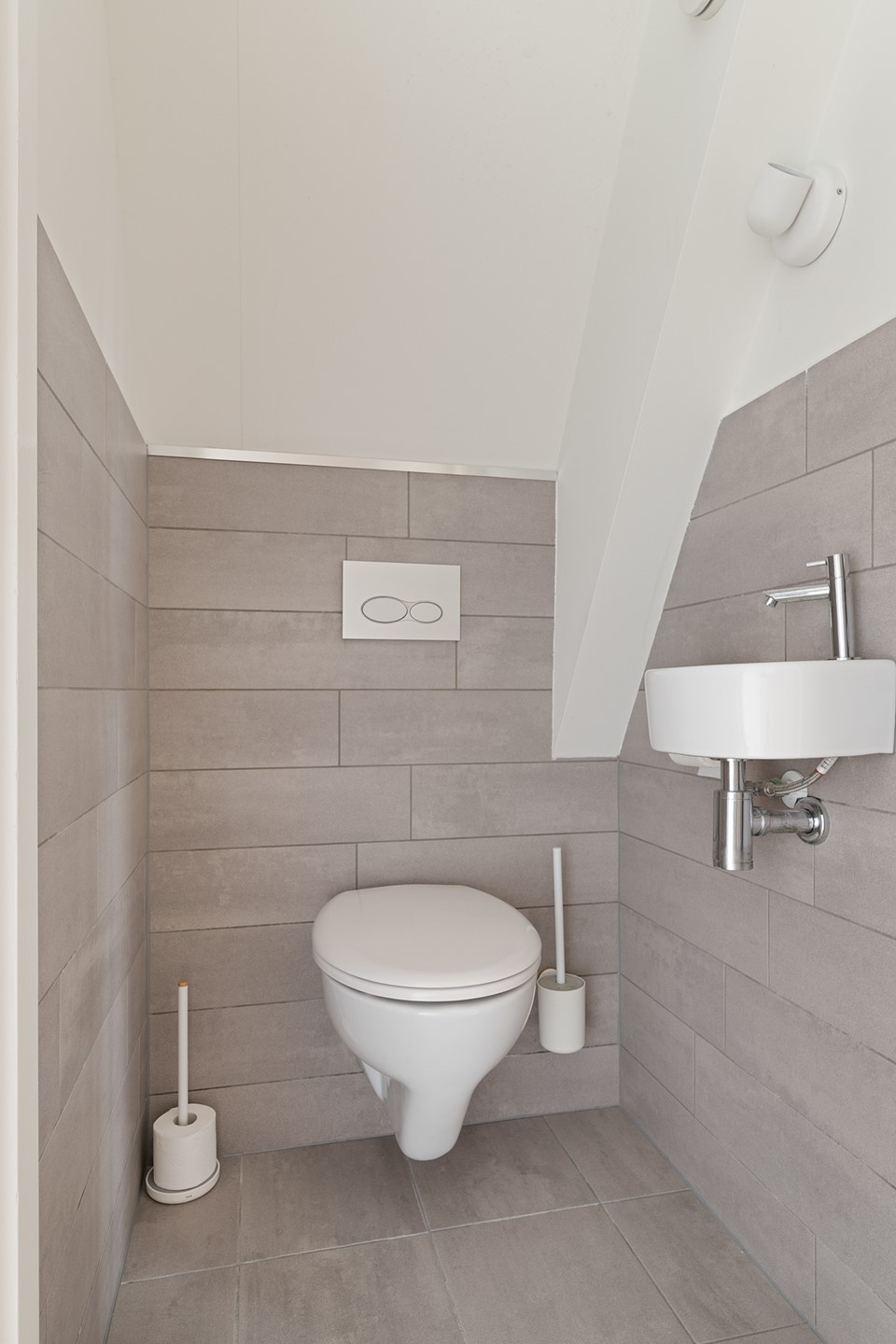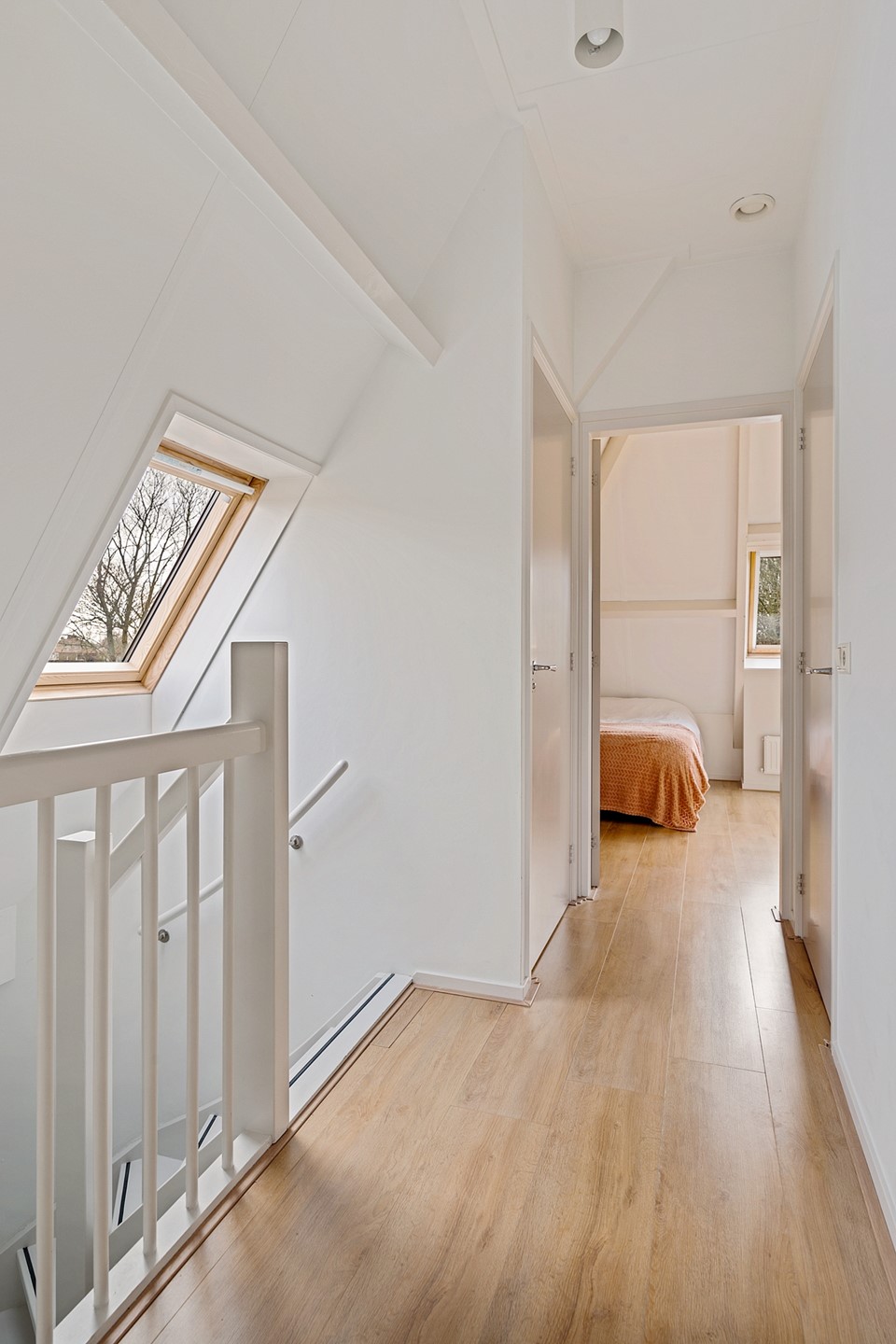 Een vaste open trap, met daglicht door een groot dakraam, brengt je naar de tweede verdieping. Door de gebroken kap is hier prettig veel leefruimte ontstaan. Aan de overloop vind je de moderne badkamer, voorzien van wastafel met meubel, inloopdouche en vloerverwarming. Deze ruimte heeft een dakkoepel voor daglichttoetreding. Aan de overkant van de overloop ligt een separate moderne toiletruimte met fonteintje. Er zijn op deze verdieping nog twee ruime slaapkamers gerealiseerd. De kamer aan de voorzijde is voorzien van een dakraam en een dakkapel, de kamer aan de achterzijde heeft een dubbel dakraam. In de ruimte tussen deze slaapkamers in, is nog een berging gerealiseerd. Handig voor alle spullen die een gezin verzameld. In deze berging hangt ook de Cv-ketel (huur) en is er plek voor wasmachine en droger.