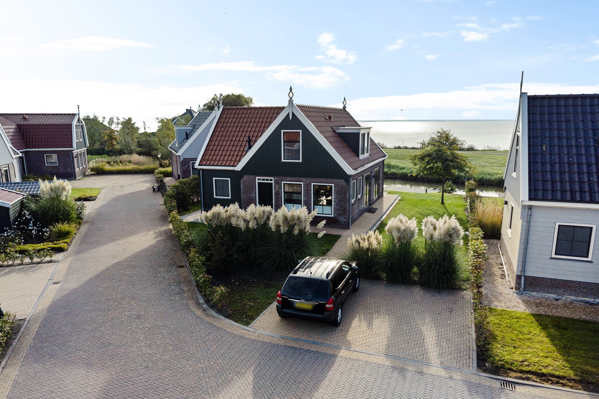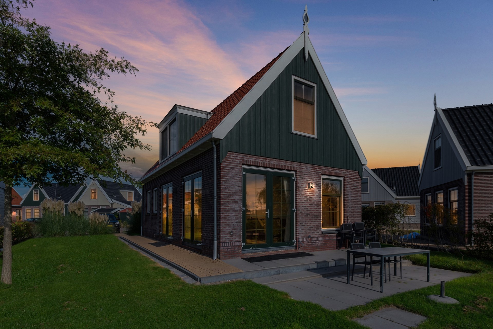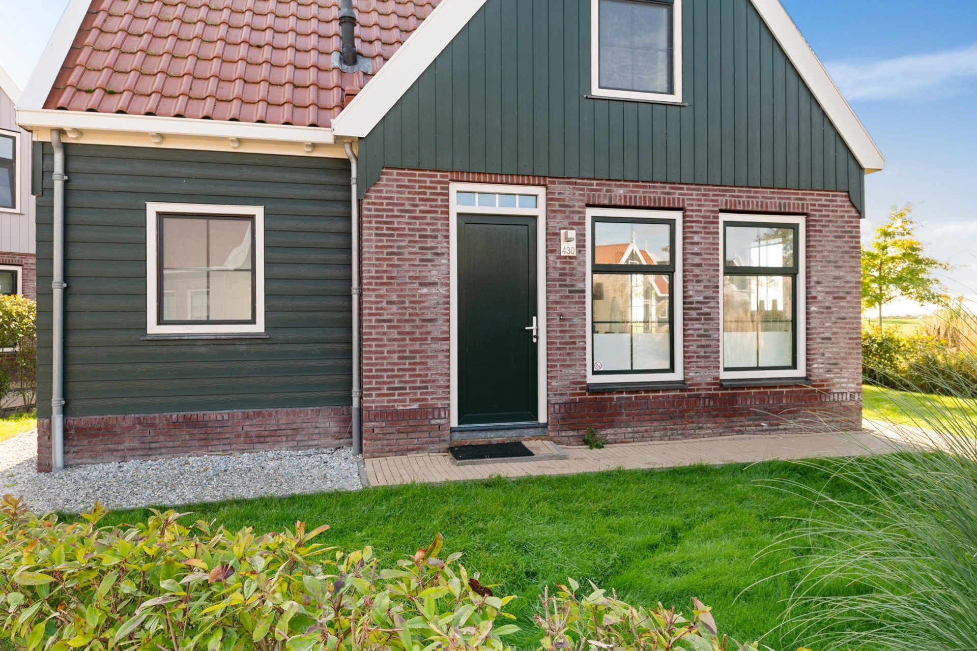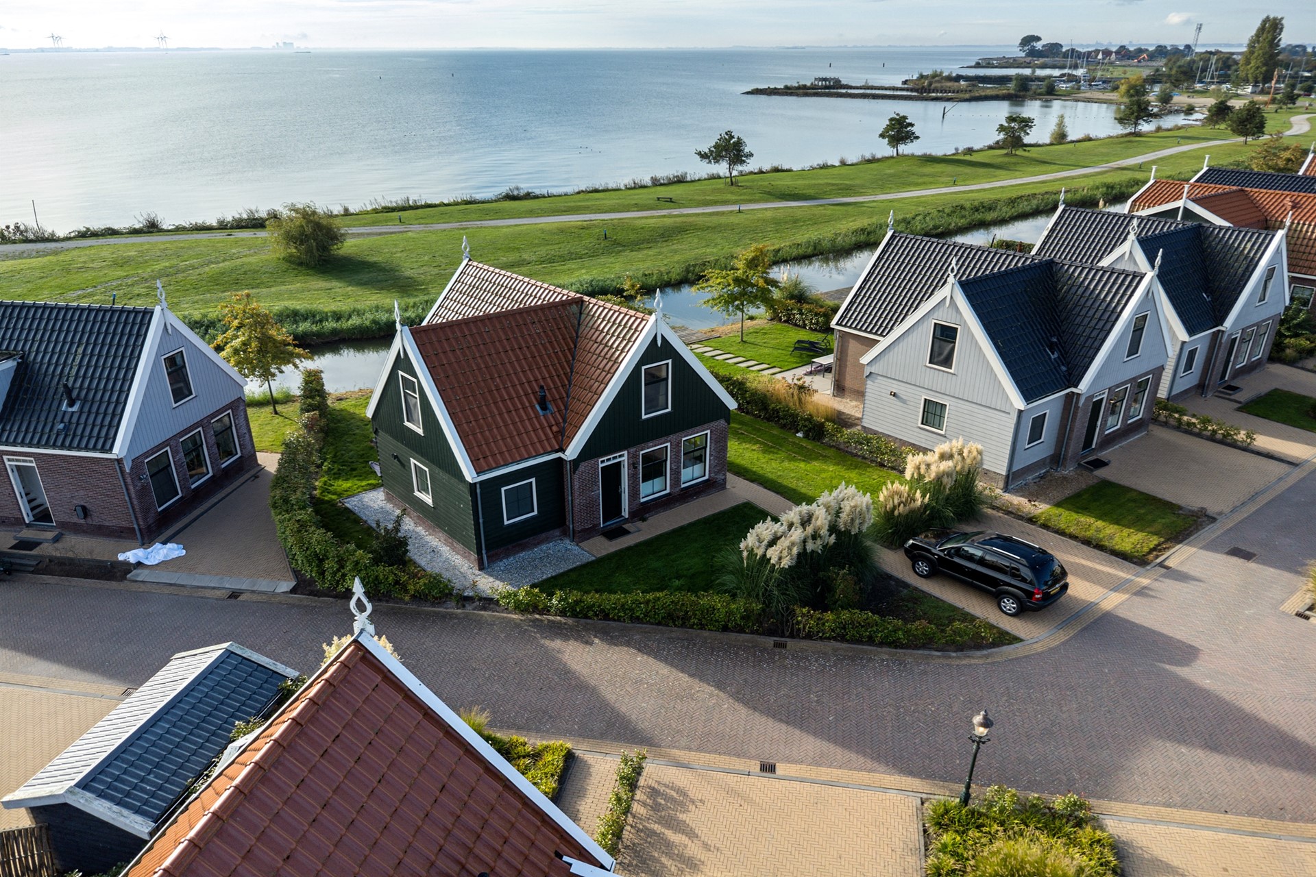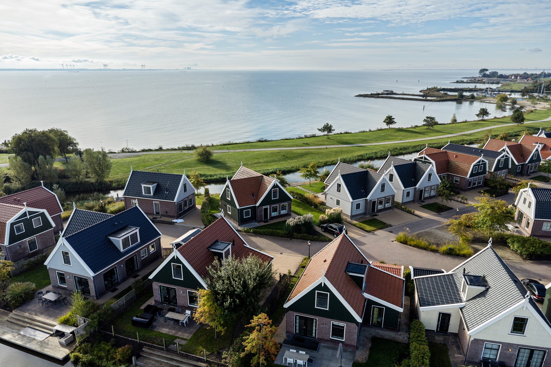 Dit vakantiehuis, met houten kap in Waterlands groen en met sierlijke makelaar, is gelegen op een relatief nieuw vakantiepark, direct gelegen achter de Uitdammerdijk aan het Markermeer. Het park is van alle gemakken voorzien, waar door de eigenaar en huurders gebruik van gemaakt mag worden. Inchecken gaat via de receptie aan het begin van het park. Daar is ook een centraal parkeerterrein gelegen, mochten de huurders met meerdere auto’s naar het park afreizen. Daarnaast beschikt het vakantiepark over wellness, een binnenzwembad, indoor en outdoor speeltuin, minigolf, minimarkt, broodjesservice, snackbar en restaurant met terras. Het is ook mogelijk om een bootje in de jachthaven aan te leggen en er is een zandstrandje met zwemgelegenheid waar ook sups te huur zijn. Tot slot zijn er voor gasten ook fietsen en e-choppers te huur om de omgeving te verkennen.
