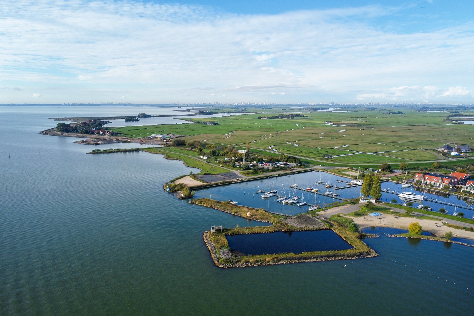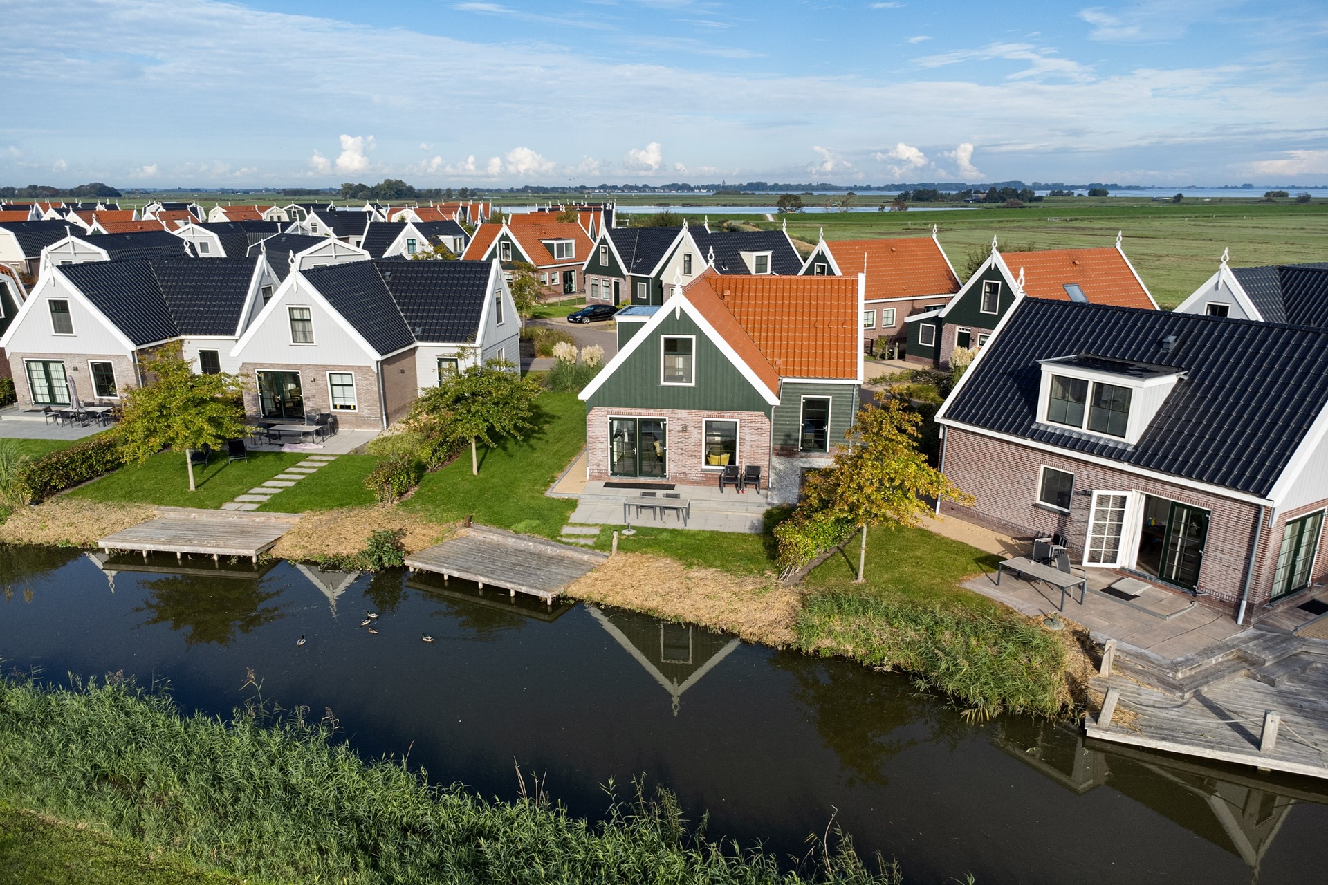 Gelegen in het groen, vrij uitzicht op het Markermeer, op goed uitgerust vakantiepark