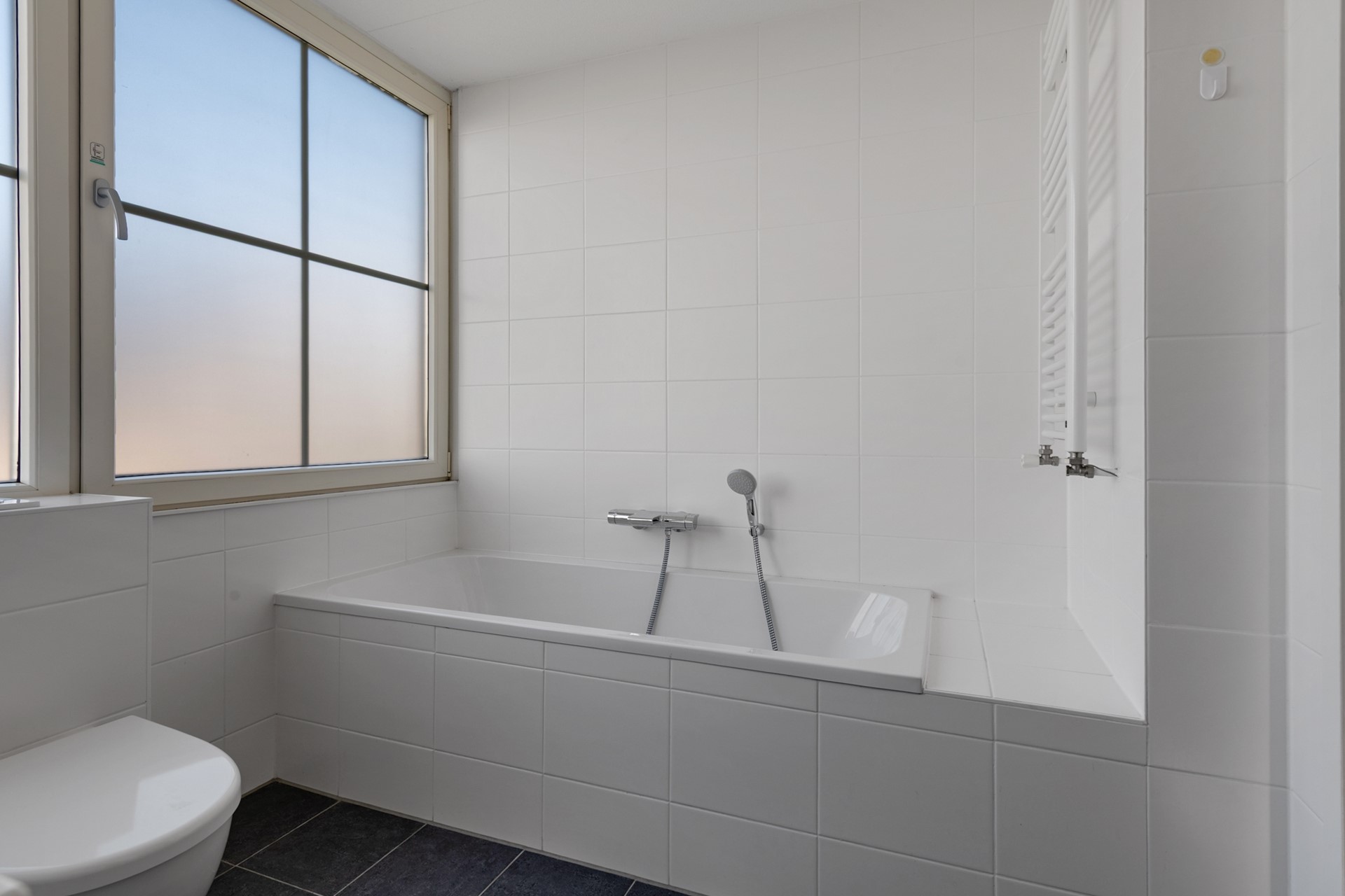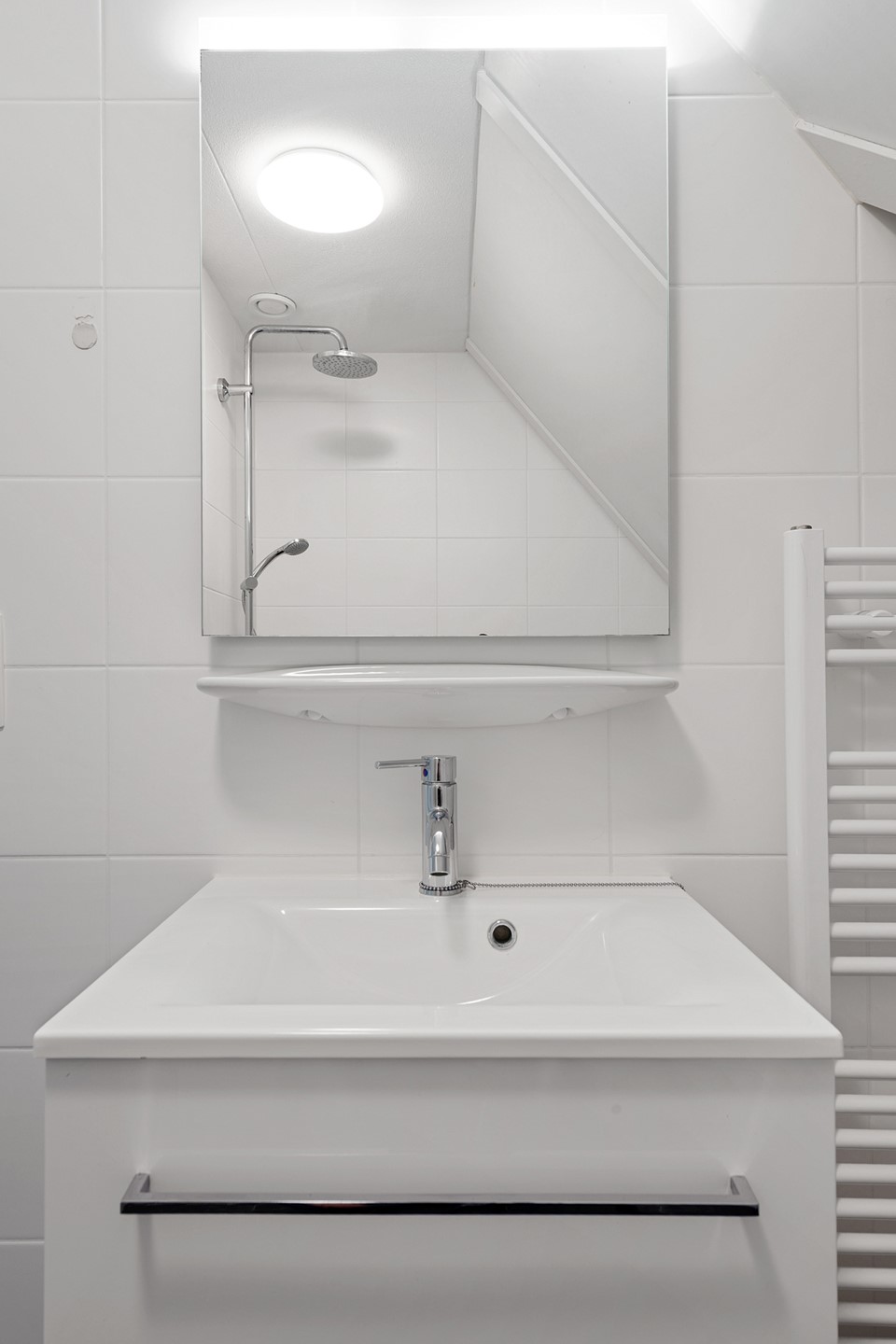 De royale L-vormige living biedt voldoende ruimte om met 8 personen aan tafel te kunnen schuiven nabij de keuken en er is een grote zithoek aan de achterzijde van de woning. Door een drietal openslaande deuren en diverse ramen met roedeverdeling in voor-, zij- en achtergevel is de begane grond heerlijk licht. Onder de trap is aan de woonkamerzijde tot slot nog een kast gerealiseerd voor opslagruimte.